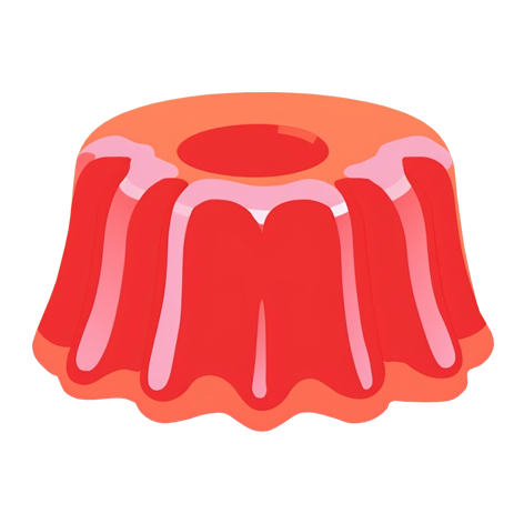 Gelatin dessert (often called Jell-O in the US) is a sweet, jiggly treat made by dissolving gelatin powder in water and adding sugar and artificial or natural flavors. Popular as a light dessert or snack.